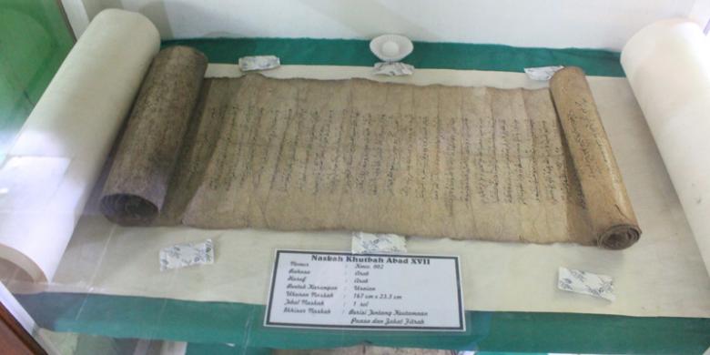 ERISTO SUBYANDONO Naskah kuno peninggalan abad XVII yang merupakan koleksi museum di Kawasan Cagar Budaya Cangkuang, Garut, Jawa Barat.Maka dari itu Cagar Budaya Cangkuang yang terletak di Kecamatan Leles, Garut menjadi pilihan utama yang akan kami kunjungi. Kompleks peninggalan sejarah yang berada di sebuah pulau yang bernama Pulo Panjang itu berada di tengah Situ Cangkuang. Situ yang dalam bahasa Sunda berati danau kecil.